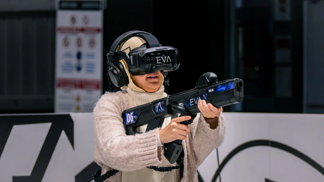 EVA repousse les limites du gaming en créant des espaces de jeu physiques équipés des technologies VR les plus avancées. Dans ces arènes de 5400 sq ft, les joueurs s’affrontent ou coopèrent sur des jeux exclusifs conçus par EVA.